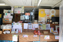 鶏舎のすぐ横に設置した直売所「みゆうとみやびの卵屋さん」では、自社産の卵のほかに、さまざまな加工品も並ぶ