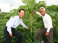 遊休農地の解消活動は2009年から取り組んでいる。農業委員が各地区の問題箇所と判断される農地の現地調査を実施。遊休地と認められる農地を全て地図に記載していく。その中から地域の農家をはじめ、多くの人の目に留まる遊休農地20~30㌃を毎年選定。もち米やパパイア、サトイモなど約6品目を作付ける。